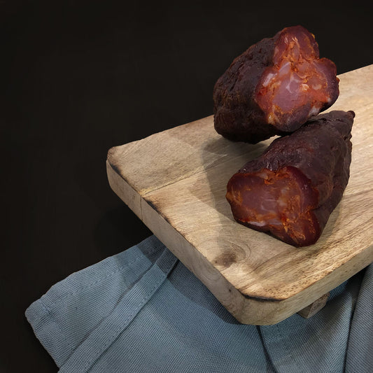 ![Chouriço Pimentão [picante]](//fumus.pt/cdn/shop/products/C10x10-300dpi.jpg?v=1679841401&width=533)   Esgotado EsgotadoChouriço Pimentão [picante]Fornecedor:FUMUS artesanal5.0 / 5.0 (5) 5 análises totais Preço normal A partir de €5,38 EURPreço normalPreço unitário / por-